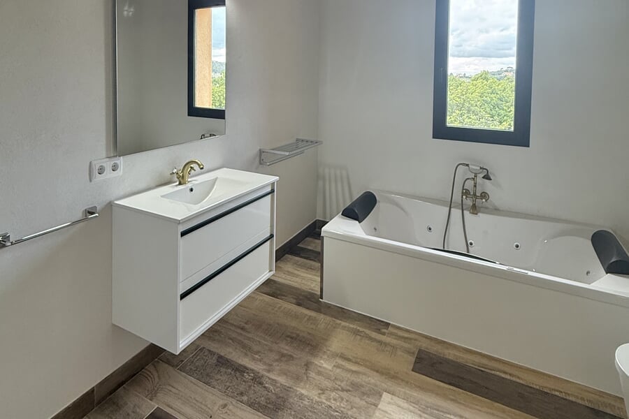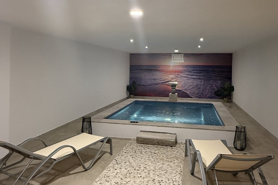 This exclusive single-family villa with pool is set on a spacious, fully fenced plot of 21,000 m². The property impresses with high-quality finishes, generous living spaces, and numerous amenities for sophisticated living. The ground floor comprises two en-suite bedrooms, an additional bedroom, a guest toilet, kitchen, dining room, living room, and entrance hall. On the upper floor, there are three en-suite bedrooms, including two bathrooms with showers and one with a whirlpool bathtub. The living area is complemented by a pergola with covered terraces, a porch/barbecue area with an outdoor bathroom, and a generous 67 m² pool area. The basement features a gym, ping-pong area, wine cellar, and a spa area with a mini pool, Turkish bath, and sauna. The exterior impresses with landscaped gardens, a pond, covered terraces, and a private well.